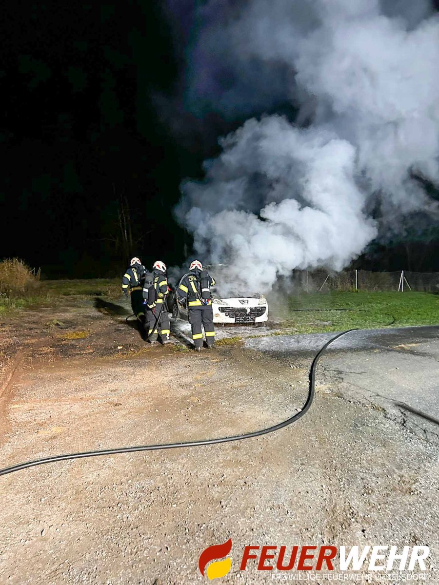 Als erstes Szenario wurde ein Fahrzeugbrand eines PKW angenommen. Der Brand musste unter schwerem Atemschutz rasch unter Kontrolle gebracht und vollständig gelöscht werden. Dabei stand besonders der sichere und geordnete Atemschutzeinsatz im Fokus.